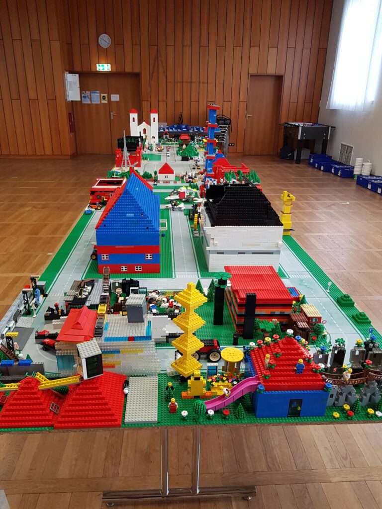 Unsere Großbaustelle „LEGO®-Stadt“ findet vom 16.-18. Oktober 2025 in der christlichen Gemeinde Osningstraße 87 in Bielefeld-Sieker statt und könnte zum Beispiel so aussehen: